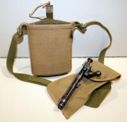 25" BBL; wire wrapped forearm, khahi sling; wood has normal use wear; removable magazine; dated 1949; launcher is marked S&B and is 6.5" long; Great Britain; SN#55686; A-192