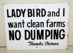 9"x12", some edge wear, unique sign from when Ladybird Johnson was trying to clean up rural America! Never seen one