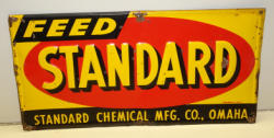 24"x48", faded and has some stains, fading and wear, barn hanger sign