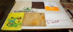 largest are about 17" long, original bumper stickers mounted to a piece of steel to display, all to go