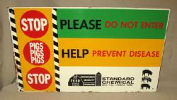 Early sign, measures 16"x16", has some light paint loss to the edges and general wear, rates 8 condition overall