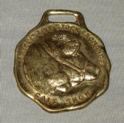 unique with key-shaped "OMAHA" badge at the top with a nice watch fob on the bottom with 3 sheep, nice markings on the reverse side too. Could be used as a fob once the convention was over