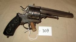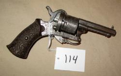 no maker's mark, 6" Oct bbl, engraved, carved grips