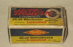 has some 25-20 shells, but don't think they are period to the box, about 1/3 full, nice clean box