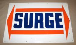 very rare sign, believe came off of top of a display rack, nice graphics, nice shape, just some light wear from age and use, 30"x13"