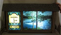 lights up, but motion does not work, going to need a tune-up, panel on left side is loose and logo has been replaced with "Hamm's CBS Bar--The Fishers", Rest of the case looks good and clean, a little work and you'll have a great sign