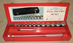 Complete and appears to be New Old Stock--NEVER USED! Outertool box has some scratches & scuffs, but tools are A-1. Has a great paper liner inside the lid that is mis-marked as a 15-piece set, but shows all 17 pieces in the picture, great set and hard to find complete