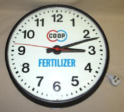 15" square, runs but does not light up, no glass face over the hands, plastic face