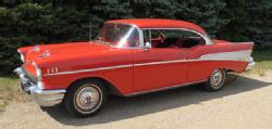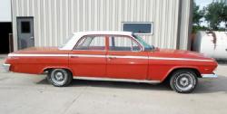 283, 3spd auto, miles unknown. Engine & Trans both OH with only 200 miles on them. Good straight body, light rust, trunk damage, bumpers good, needs paint. Interior is fair to poor condition and needs work. New rims & tires, original hubcaps are with the car, Disc brakes, hoses, alternator, plus, plug wires, battery & Exhaust (headers) all new