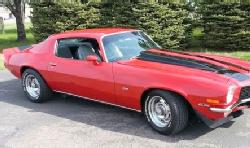 350, 350 Turbo Auto, factory RS with Z-28 badging, Factory AC, floor shift, factory PS, has all new white letter tires and Z-28 rims, new paint in 2011 (Camaro Synergy Green) with Black Mat stripes and rear spoiler, New original black interior, carpet, headliner, dash pad and console.