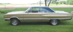 318, auto, shows 69K miles. Speedo works, Odometer does not. 2bbl Carb rebuilt, Pertronix Ignition kit, trans shifts well, both drip very little, all new dual exhaust including Hooker headers & Thrush Mufflers. Engine runs cool, radiator is good. New fuel tank. Power Steering. No rust or patch panels, new gold/Black paint, extra grille included for source of headlights. Glass is all good. Chrome aftermarket rally wheels with redline radials. New carpet, seat covers, & headliner. Dash pad & visors are excellent. CD player, Temp, fuel gauges, and wipers all work. Rear axle bearings just repacked but still groan some. Receipts & car cover included.