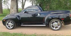 Black, red interior, 454 w/ auto, AC, cruise, tilt, AM/FM/CD, bucket seats w/ console, 18" aftermarket wheels, includes originals, 2K miles on tires, 8K miles on overhaul, new aluminum radiator, runs great, custom headlights & taillights, new vinyl bed cover