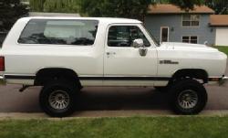 318 V-8, auto, 93K miles, 2-door, stock motor & trans, engine starts & runs well, shifts smooth, excellent body and exceptional original white paint, all glass is good, chrome is nice, no rust! Excellent original black interior, gauges all work, seats & carpet excellent. 4" lift, near new Firestone 12.5/33/15 tires