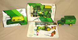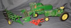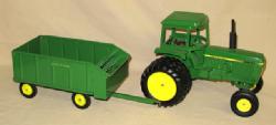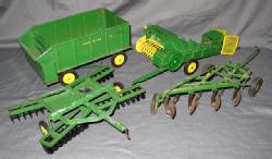 Tractor is damaged, wagon is nice with decals flaking, sells as a set