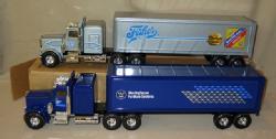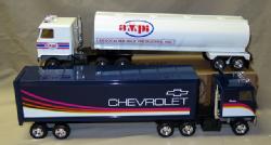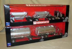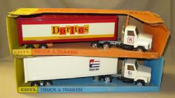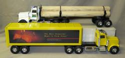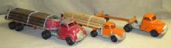 Livestock semi is plastic, Red car hauler is all metal, other car hauler is metal cab with plastic trailer, all have wear, 3x the money
