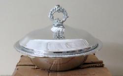 Mint in box, we opened, 11" diam, has the logo etched in the lid