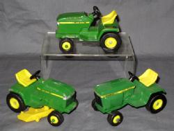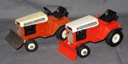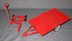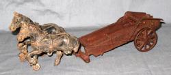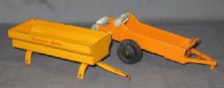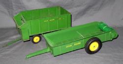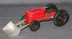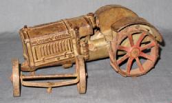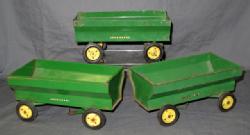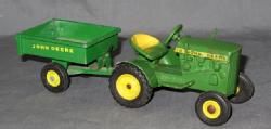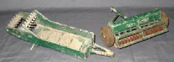 Tractor is missing front wheel & steering wheel, wagon is decent original, sells as a set for one money