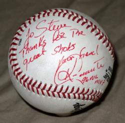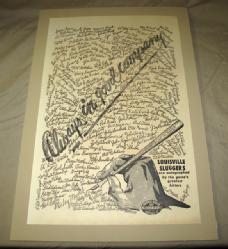 mounted to a board, using a Mickey Mantle Bat pen, nice piece