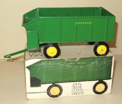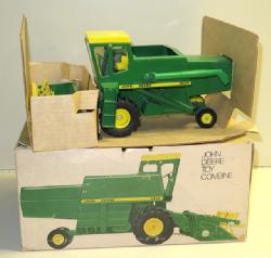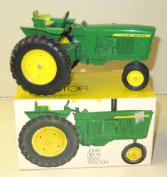 NIB, toy paint looks to be near mint, but cab insert has been changed out with one with a driver that has been painted to look like a JD dealer, looks good