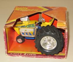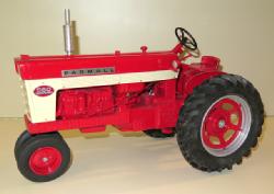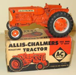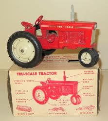 restored tractor with custom wheels added, toy looks good, pretty nice original box, box rates 90% condition