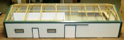 about 1/16th scale, 4' long, 22" wide, no roof, open rafters, looks good--NO SHIPPING, local pickup only