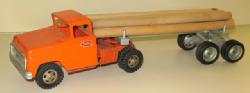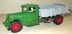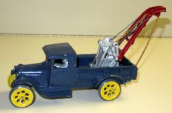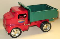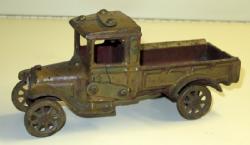 old damage with a unique old repair using a strap and screws on both doors and the cab, old toy, but poor condition, buy it for the unique way some grandpa repaired this toy for a kid!