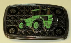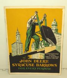 11"x6", near mint, super color, no chips, light discoloration to the green trim, advertises John Deere Sales & Service in the dealer tag