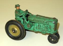 Very scarce toy, these were issued to 4-H groups to demonstrate tractor safety. They have an open belly with a pulley around the axles to wind a rubber band. Very scarce toy and this one is very nice with minor ear